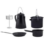 Deze vierdelige kampvuur kookset van Esschert Design bevat alle benodigdheden voor de bereiding van een flinke maaltijd boven een kampvuur. Hang de pannen aan een driepoot of plaats ze direct op een kampvuurgrill. U kunt vanalles met deze uitgebreide set bereiden, van stoofpot en glรผhwein tot een heerlijk bakkie koffie.