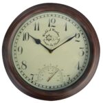 Deze mooie buitenklok heeft een elegante uitstraling. De tijd wordt weergeven in Arabische cijfers. Een ingebouwde thermometer toont temperaturen tussen -50 °C en 50 °C. De klok werkt het beste op een beschermde plek in de buitenlucht.