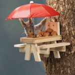 Schattig ontwerp: de picknicktafel voor eekhoorns is ideaal voor je speelse buurtende eekhoorns om van eten te genieten. Schattige kleine beestjes die aan de picknicktafel snoepen, zullen iedereen zeker opvrolijken!
