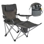 Deze kampeerstoel heeft een stevig stalen frame en de zitting is gemaakt van sterk 600D oxford materiaal, dat bekend staat om zijn zeer duurzame en waterdichte eigenschappen. De meegeleverde hoofdsteun en voetensteun bieden extra comfort. Tevens kan je met de geïntegreerde bekerhouder, koeltas en opbergvakken alles wat je nodig hebt binnen handbereik houden.