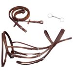 U ontvangt een leren hoofdstel met teugels en een trens bit met losse ringen.
