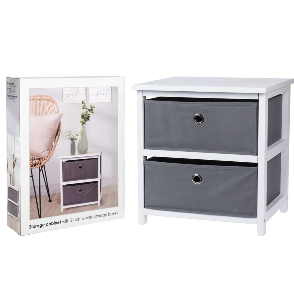 De kast heeft een modern en ruim ontwerp en past in elke ruimte in je huis. Hij is gemaakt van MDF en ontworpen met 2 grijze nonwoven lades.