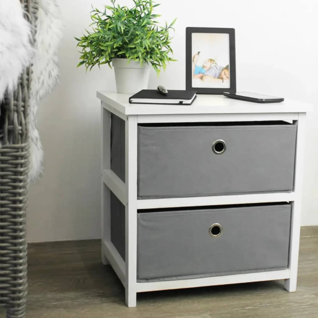 Deze wit met grijze opbergkast met 2 lades voor kinderen uit de H&S collectie is de beste opbergoptie.
