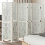 Kamerscherm met 6 panelen massief paulowniahout wit