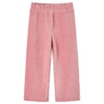 Deze kinderbroek heeft wijde pijpen met ribbels, een elastische tailleband en 2 ingezette zakken aan de achterkant. De kinderbroeken zijn gemaakt van ribfluweel en zijn rekbaar als joggingbroeken, waardoor ze comfortabel en duurzaam zijn.