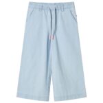 Deze kinderbroek heeft wijde pijpen, een elastische tailleband en 2 zakken aan de voorkant. De kinderbroek is zachtdenimblauw, wat modieus is en bij elke andere kleur kleding past. De kinderbroek met wijde pijpen is gemaakt van 100% katoen, waardoor hij comfortabel, ademend en duurzaam is.
