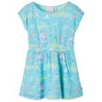 Deze kinderjurk heeft een ronde halslijn, kapmouwen en een elastische tailleband. Deze kinderjurk heeft een gaaslaag met een patroon van strandlandschappen. Het korte kinderjurkje is gemaakt van zacht materiaal met polyester, katoen en elastaan, waardoor het comfortabel en ademend is.
