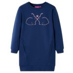 Deze kinderjurk heeft lange mouwen, een ronde hals en een rechte pasvorm. Op de jurk staan 2 schattige konijntjes afgebeeld en hij heeft 2 voorzakken. De sweatjurk is gemaakt van 95% katoen en 5% elastaan, waardoor hij comfortabel en ademend is. De zachte fleecevoering van de kinderjurk zorgt voor extra warmte.