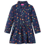 Deze kinderjurk heeft lange mouwen, een omgeslagen kraag en een trekkoord bij de taille. Op deze gehele marineblauwe jurk is een print van blaadjes te zien. Het korte kinderjurkje is gemaakt van zacht materiaal met katoen en elastaan voor comfort en ademend vermogen.