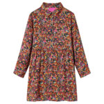 Deze kinderjurk heeft lange mouwen en een omgeslagen kraag en sluit met een rij knopen. Dit meerkleurige kinderjurkje is helemaal bedrukt met prachtige bloemen. Het is gemaakt van zacht materiaal met 100% lyocell voor comfort en ademend vermogen.