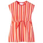 Deze kinderjurk heeft een ronde halslijn, korte mouwen en een tailleband met trekkoord. Op deze kinderjurk staan allemaal felle verticale strepen gedrukt. Het korte kinderjurkje is gemaakt van zacht materiaal met 95% katoen en 5% elastaan, waardoor het comfortabel en ademend is.