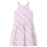 Deze kinderjurk heeft een tailleband met trekkoord en bandjes die over elkaar kruizen op de rug. Dit mouwloze kinderjurkje heeft diagonale strepen. Het korte kinderjurkje is gemaakt van zacht materiaal met 95% katoen en 5% elastaan, waardoor het comfortabel en ademend is.