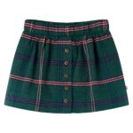 Dit kinderrokje heeft een A-lijn ontwerp en een elastische tailleband. Dit kinderrokje heeft een geruit patroon en een rij sierknopen aan de voorkant voor een vintage uiterlijk. Het is gemaakt van 100% katoen voor comfort en warmte.