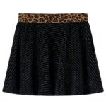 Dit kinderrokje heeft een elastische tailleband met een luipaardpatroon en uitlopende zoom. Het kinderrokje is voorzien van zilverkleurige, glinsterende lijnen. Het is gemaakt van zacht materiaal met 95% katoen en 5% elastaan voor comfort en ademend vermogen.