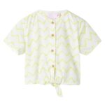 Dit kindershirt heeft korte mouwen, een ronde halslijn en een recht model. Dit kindershirt heeft een streepjespatroon en een knoop in de zoom. De buitenkant van het kindershirt met korte mouwen is gemaakt van 100% katoen, waardoor het zacht en comfortabel aanvoelt.