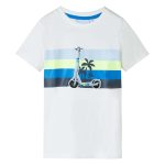 Dit kindershirt heeft korte mouwen, een ronde halslijn en een recht model. Op de voorkant van dit kindershirt is een step geborduurd op een print van gekleurde strepen en palbomen. Het kindershirt met korte mouwen is gemaakt van 100% katoen, waardoor het zacht en comfortabel aanvoelt.