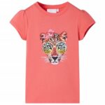 Dit kindershirt heeft korte mouwen, een ronde halslijn en een recht model. Dit kindershirt heeft een luipaardkop met een modieuze bril en bloemen op de borst. Het kindershirt met korte mouwen is gemaakt van 95% katoen en 5% elastaan, waardoor het comfortabel en ademend is.