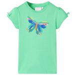 Dit kindershirt heeft korte mouwen, een ronde halslijn en een recht model. Dit kindershirt heeft een kleurrijke vlinder van pailletten op de voorkant en op de mouwen zitten decoratieve strikjes. Het kindershirt met korte mouwen is gemaakt van 95% katoen en 5% elastaan, waardoor hij comfortabel en ademend is.