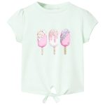 Dit kindershirt heeft korte mouwen, een ronde halslijn en een recht model. Op dit kindershirt staan ijsjes afgebeeld Het kindershirt met korte mouwen is gemaakt van 95% katoen en 5% elastaan, waardoor het zacht en comfortabel aanvoelt.