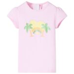 Dit kindershirt heeft korte mouwen, een ronde halslijn en een recht model. Op dit kindershirt staan een regenboog en palmbomen afgebeeld. Het kindershirt met korte mouwen is gemaakt van 95% katoen en 5% elastaan, waardoor hij comfortabel en ademend is.