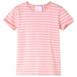 Dit kindershirt heeft korte, opgerolde mouwen, een ronde halslijn en een recht model. Dit t-shirt is helemaal gestreept. Het kindershirt met korte mouwen is gemaakt van 95% katoen en 5% elastaan, waardoor het comfortabel en ademend is.