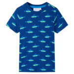 Dit kindershirt heeft korte mouwen, een ronde halslijn en een recht model. Dit kindershirt heeft een patroon van haaien. Het kindershirt met korte mouwen is gemaakt van 100% katoen, waardoor het zacht en comfortabel aanvoelt.