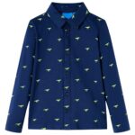 Dit kindershirt heeft lange mouwen, een puntkraag en hij sluit middels een rij knopen. Op dit kindershirt staan allemaal dinosaurussen afgebeeld. Dit kindershirt is van 100% katoen gemaakt, waardoor hij comfortabel ademend is.