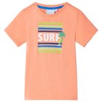 Dit kindershirt heeft korte mouwen, een ronde halslijn en een recht model. Op dit kindershirt staan horizontale strepen op de borst. Op dit kindershirt staat het woord SURF, een surfer en een palmboom afgebeeld. Het kindershirt is gemaakt van zacht materiaal met 57% katoen, 38% polyester en 5% elastaan, waardoor het zacht en comfortabel aanvoelt.
