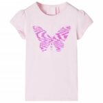 Dit kindershirt heeft kapmouwen, een ronde halslijn en een recht model. Op dit kindershirt staat een vlinder van pailletten afgebeeld. Het kindershirt met kapmouwen is gemaakt van zacht materiaal met 95% katoen en 5% elastaan, waardoor het extra comfortabel en ademend is.
