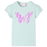 Dit kindershirt heeft kapmouwen, een ronde halslijn en een recht model. Op dit kindershirt staat een vlinder van pailletten afgebeeld. Het kindershirt met kapmouwen is gemaakt van zacht materiaal met 95% katoen en 5% elastaan, waardoor het extra comfortabel en ademend is.