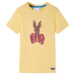 Dit kindershirt heeft korte mouwen, een geribbelde ronde halslijn en een recht model. Op dit kindershirt staat een kangoeroe met bokshandschoenen afgebeeld. Het kindershirt met korte mouwen is gemaakt van 100% katoen, waardoor het comfortabel en ademend is.