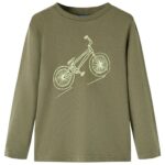 Dit t-shirt heeft lange mouwen, een ronde halslijn en een recht model. Op dit kakikleurige kindershirt staat een fiets afgebeeld. Het kindershirt met lange mouwen is gemaakt van 100% katoen en voelt zacht en comfortabel aan.