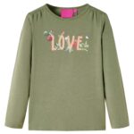 Dit kindershirt heeft lange mouwen, een ronde halslijn en een recht model. Op dit kakikleurige kindershirt staat het woord ‘love’ afgebeeld. Het kindershirt met lange mouwen is gemaakt van zacht materiaal met 95% katoen en 5% elastaan voor extra comfort en ademend vermogen.