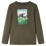 Dit kindershirt heeft lange mouwen, een ronde halslijn en een recht model. Op dit kakikleurige t-shirt is een voetbalspeler afgebeeld. Het kindershirt met lange mouwen is gemaakt van 100% katoen dat is behandeld met een waslaag van siliconen en enzymen voor een zacht en comfortabel gevoel.