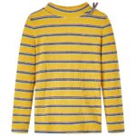 Dit kindershirt van ribstof heeft lange mouwen, een halve col en een recht model. Ook zit er een strikje op de kraag van dit okerkleurig kindershirt. Het kindershirt met lange mouwen is gemaakt van zacht materiaal met 80% rayon, 15% polyester en 5% elastaan voor extra comfort en ademend vermogen.