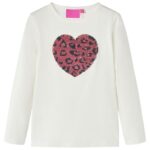 Dit kindershirt heeft lange mouwen, een ronde halslijn en een recht model. Op dit ecru kindershirt is een glinsterend hart van pailletten afgebeeld. Het kindershirt met lange mouwen is gemaakt van zacht materiaal met 95% katoen en 5% elastaan voor extra comfort en ademend vermogen.
