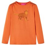 Dit kindershirt heeft lange mouwen, een ronde halslijn en een recht model. Op dit oranjebruine kindershirt staat een leuk katje afgebeeld. Het kindershirt met lange mouwen is gemaakt van zacht materiaal met 95% katoen en 5% elastaan voor extra comfort en ademend vermogen.
