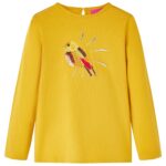 Dit t-shirt heeft lange mouwen, een ronde halslijn en een sleutelgat opening achterin de nek. Op dit donker okerkleurige t-shirt is een schattige, kleurrijke vogel afgebeeld. Het kindershirt met lange mouwen is gemaakt van zacht materiaal met 95% katoen en 5% elastaan voor extra comfort en ademend vermogen.