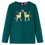 Dit kindershirt heeft lange mouwen, een ronde halslijn en een recht model. Op dit kindershirt staan 2 hertjes met hartjes afgebeeld. Het kindershirt met lange mouwen is gemaakt van zacht materiaal met 95% katoen en 5% elastaan voor extra comfort en ademend vermogen.
