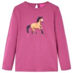 Dit t-shirt heeft lange mouwen, een ronde halslijn en een sleutelgat opening met een knoop achterin de nek. Op dit frambooskleurige kindershirt staat een prachtig paardje. Het kindershirt met lange mouwen is gemaakt van zacht materiaal met 95% katoen en 5% elastaan voor extra comfort en ademend vermogen.