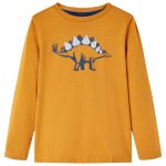 Dit t-shirt heeft lange mouwen, een ronde halslijn en een recht model. Op dit donkerokere T-shirt staat een dinosaurus afgebeeld. Het kindershirt met lange mouwen is gemaakt van 100% katoen dat met een silicone- en enzymwassing is behandeld, zodat hij zacht en comfortabel aanvoelt.