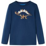 Dit t-shirt heeft lange mouwen, een ronde halslijn en een recht model. Op dit marineblauwe T-shirt staat een dinosaurus afgebeeld. Het kindershirt met lange mouwen is gemaakt van 100% katoen dat met een silicone- en enzymwassing is behandeld, zodat hij zacht en comfortabel aanvoelt.