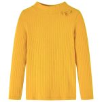 Dit geribde kindershirt heeft lange mouwen, een halve col en een recht model. Dit donker okerkleurige t-shirt heeft een strikje op de halslijn. Het kindershirt met lange mouwen is gemaakt van zacht materiaal met 95% katoen en 5% elastaan voor extra comfort en ademend vermogen.