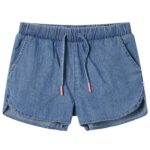 Deze kindershort heeft een elastische tailleband met trekkoord en een nepachterzak. De kindershort is denimblauw, wat modieus is en bij elke andere kleur kleding past. De kindershorts is gemaakt van zacht materiaal met 100% katoen, waardoor hij comfortabel en ademend is.