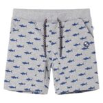 De kindershort heeft een patroon van haaien. Deze korte broek voor kinderen heeft een elastische tailleband met trekkoord, een nep achterzak, 2 zijzakken en ingenaaide omslagen aan de zoom. De kindershorts is gemaakt van zacht materiaal met 90% katoen en 10% viscose, waardoor hij comfortabel en ademend is.