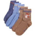 Op deze sokken staan gekleurde strepen en een aap afgebeeld. De sokken hebben versterkte hielen en tenen, zodat ze langer meegaan. De kindersokken zijn gemaakt van katoenrijke stof en ze houden de voeten warm en droog.