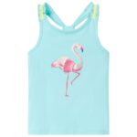 Deze kindertop heeft elastische schouderbandjes en een rechte pasvorm. Dankzij de flamingo van glitters ziet het kindershirt er elegant en mooi uit. De kindertop is gemaakt van 95% katoen en 5% elastaan, waardoor hij zacht en comfortabel aanvoelt.