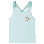 Deze kindertop heeft elastische schouderbandjes en een rechte pasvorm. Dankzij de hartjes van glitters ziet het kindershirt er elegant en mooi uit. De kindertop is gemaakt van 95% katoen en 5% elastaan, waardoor hij zacht en comfortabel aanvoelt.