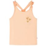 Deze kindertop heeft elastische schouderbandjes en een rechte pasvorm. Dankzij de hartjes van glitters ziet het kindershirt er elegant en mooi uit. De kindertop is gemaakt van 95% katoen en 5% elastaan, waardoor hij zacht en comfortabel aanvoelt.