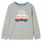 Deze trui voor kinderen heeft lange mouwen, een ronde hals en geribbelde randen aan de manchetten, halslijn en onderkant. De kindertrui is gemaakt van 80% katoen en 20% polyester, waardoor hij comfortabel en ademend is. De kindertrui heeft een bus en een fiets op de borst.